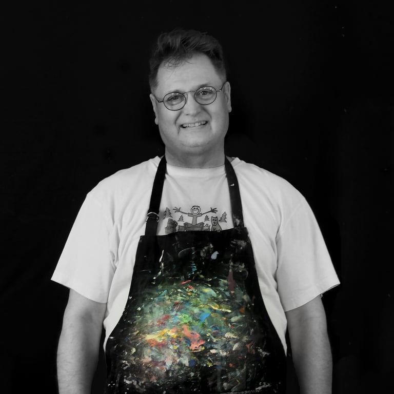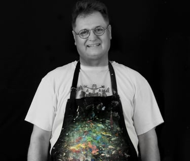 My creative path began in the early 1980s while studying art, then grew through decades as a professional photographer (from black-and-white nature work to thousands of conceptual portrait sessions). That camera-trained eye still shapes everything I paint today—strong composition, confident color, and a clear focal point—only now the goal is more personal: to make paintings that take you somewhere.